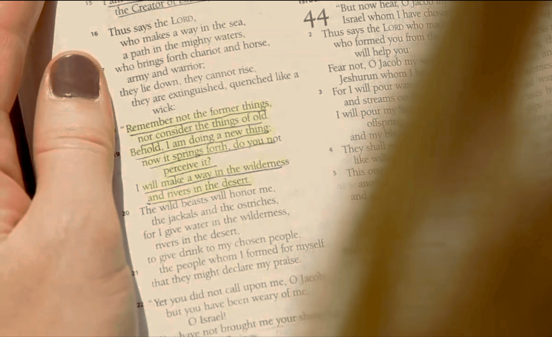 Behold, I am doing a new thing; now it springs forth, do you not perceive it? I will make a way in the wilderness and rivers in the desert. Isaiah 43:19 (ESV)